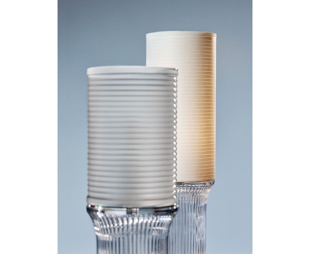 Pierre Charpin und Saint-Louis treffen sich erneut, um Cadence vorzustellen, eine bereichsübergreifende Kollektion von 29 Teilen, alle aus klarem Kristall und geprägt vom Zusammenspiel horizontaler und vertikaler Schnitte. Die Linienführung interpretiert das gestische Vokabular der Saint-Louis-Kunsthandwerker, das von Generation zu Generation weitergegeben wird: eine synchronisierte Choreografie der Glasbläser in der heißen Werkstatt; Variationen einer Kristallschliff-Grammatik in der kalten Werkstatt.