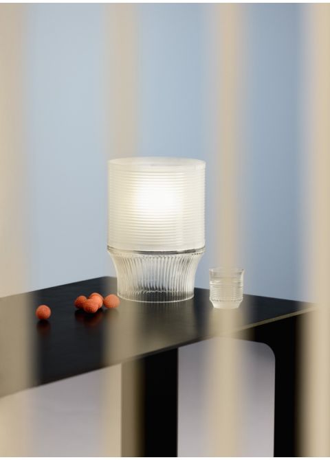 Pierre Charpin und Saint-Louis treffen sich erneut, um Cadence vorzustellen, eine bereichsübergreifende Kollektion von 29 Teilen, alle aus klarem Kristall und geprägt vom Zusammenspiel horizontaler und vertikaler Schnitte. Die Linienführung interpretiert das gestische Vokabular der Saint-Louis-Kunsthandwerker, das von Generation zu Generation weitergegeben wird: eine synchronisierte Choreografie der Glasbläser in der heißen Werkstatt; Variationen einer Kristallschliff-Grammatik in der kalten Werkstatt.