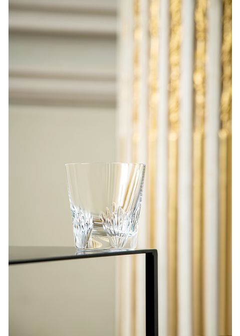 Der Becher Louis XV trägt den Rocaille-Stil, der die Herrschaft dieses Königs prägte, da dort Muscheln in kristallklarer Form mit dünnen Fasen eingraviert sind. Diese Schliffe erinnern auch an das Feuerwerk aus einer Zeit der Feste und Köstlichkeiten.