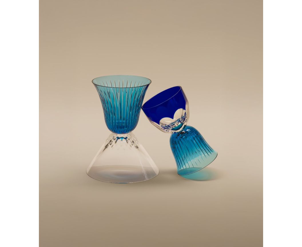 José Lévy schafft eine überraschende Verbindung von Schliffen und Farben, indem er die Kelche emblematischer Saint-Louis-Gläser kombiniert. Verspielte Objekte, die sowohl aufrecht als auch umgedreht schön sind. Er spielt mit den Formen und der Farbpalette von Saint-Louis, interpretiert sie neu, dreht sie um und setzt sie zusammen, um einzigartige Stücke zu schaffen. Gläser, dekorative Objekte, Kerzenständer… sie verleihen jedem Raum Farbe. Erfinden Sie neue Verwendungszwecke dafür!