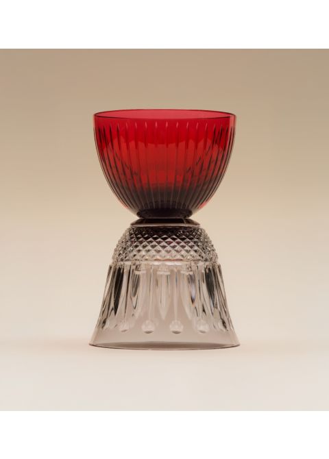 José Lévy schafft eine überraschende Verbindung von Schliffen und Farben, indem er die Kelche emblematischer Saint-Louis-Gläser kombiniert. Verspielte Objekte, die sowohl aufrecht als auch umgedreht schön sind. Er spielt mit den Formen und der Farbpalette von Saint-Louis, interpretiert sie neu, dreht sie um und setzt sie zusammen, um einzigartige Stücke zu schaffen. Gläser, dekorative Objekte, Kerzenständer… sie verleihen jedem Raum Farbe. Erfinden Sie neue Verwendungszwecke dafür!