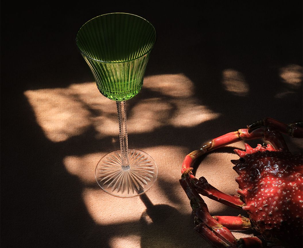 Born from the classic motif of the Thistle collection in 1979, the Apollo line presents extreme refinement. The fluidity of the lines and the finesse of the engraving clearly express the essential liquid nature of crystal. Fine Venetian ribs on the parison and the surprising nic-nac cut flow down the Apollo glasses, like a cascade of pure water coming to bloom roundly.