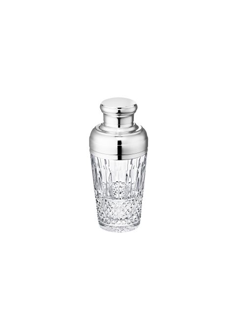 The Tommy shaker is part of a clear crystal bar set. This set also includes a highball, a medium and small cylindrical tumbler, a large old fashion #1 and medium #3, a shot, a vodka glass, a tasting glass, a vodka flute, and a cocktail glass. This set also includes a square bottle, a liqueur carafe, and a vodka decanter.