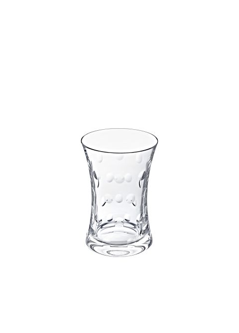 The vision of the drop of glass bead at the end of the blower's cane, both fragile and strong, inspired Teleri Ann Jones. Sparkling and sensual, developed in a vast family of shapes and uses, from the table to the bar, Bubbles has renewed the transparent, colorful creation of contemporary Saint-Louis services. The mischievous stacking of crystal beads on the leg and the goblet with sparkling bubbles are the originality of this line.