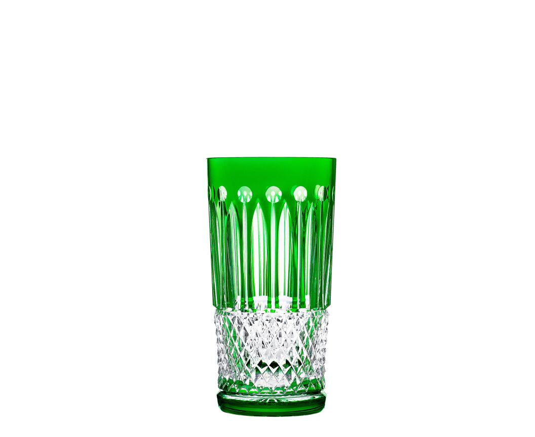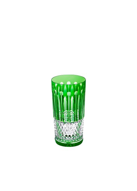 The green highball is part of a colored crystal dinner service. This also consists of a hock, a champagne flute, a small cylindrical goblet, a cocktail glass and a medium old fashion n°3.