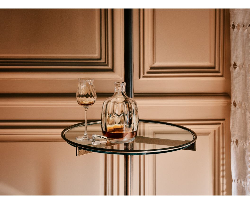 Once the spirit is poured into the decanter, the Venetian ribs fade away, but amplify the luminosity and multiply the nuances of the liquid's color.