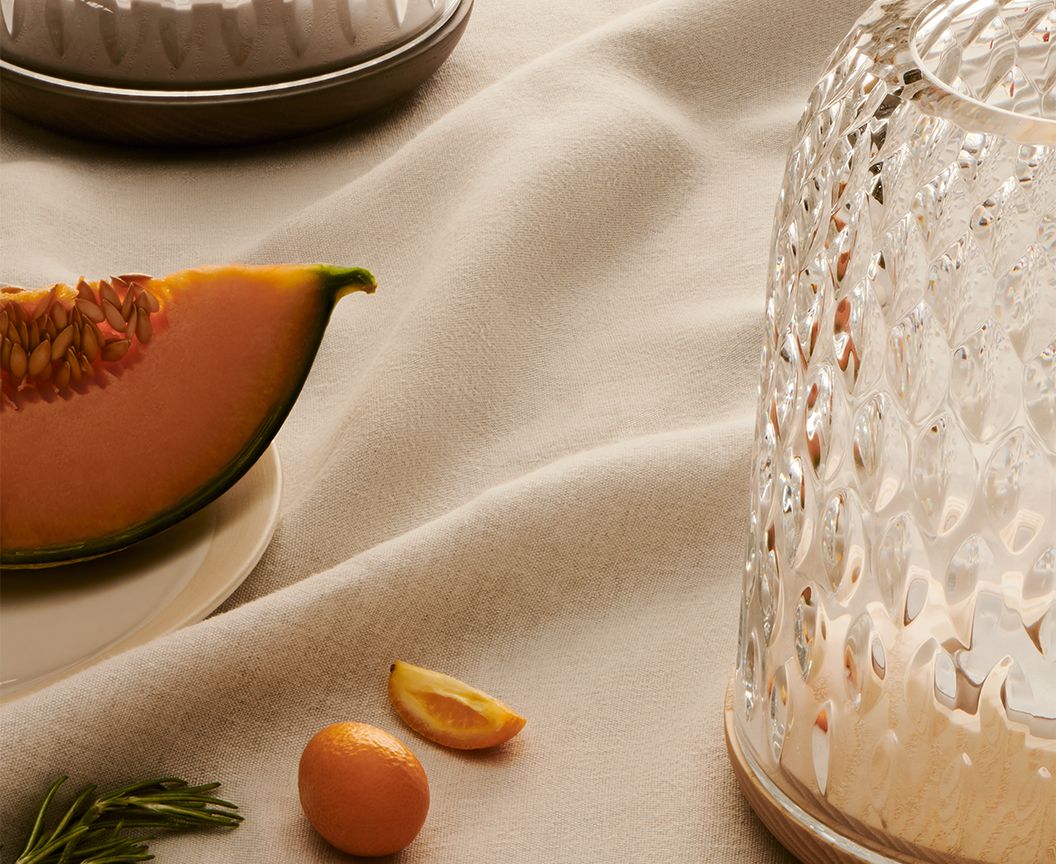 In homage to the forest that surrounds the Saint-Louis factory and to creative madness, Noé Duchaufour-Lawrance imagined the transversal Folia collection, covering all of Saint-Louis' historic universes: the table, the bar, candles, vases and light. With the manufacture, he also explored a new dimension: furniture. An alliance of the brilliance of crystal and the strength of wood, Folia is a contemporary evocation of nature, from its leaf-shaped cut to the finishes of its clear or satin-finish crystal.