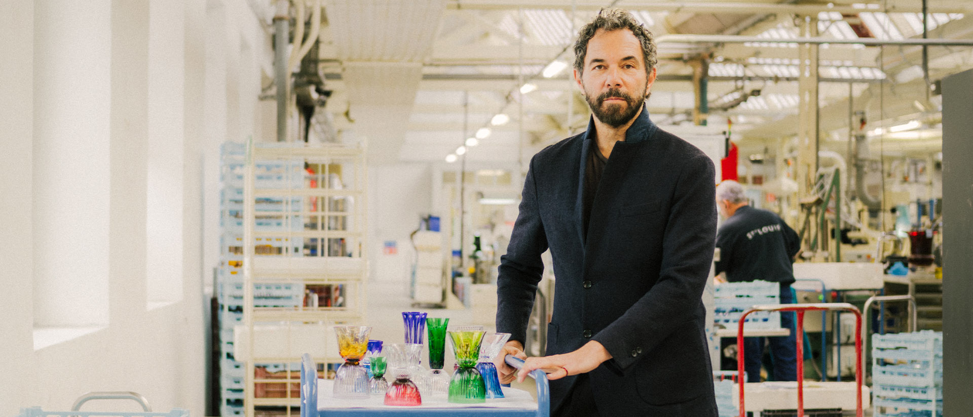 A Saint-Louis partner of many years’ standing, he designed the first generation of Les Endiablés in 2011, followed by the Corollaire vases in 2012. His creative universe plays endlessly with otherness and reappropriation, creating objects whose use is left open, to be guided by each individual’s imagination.