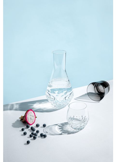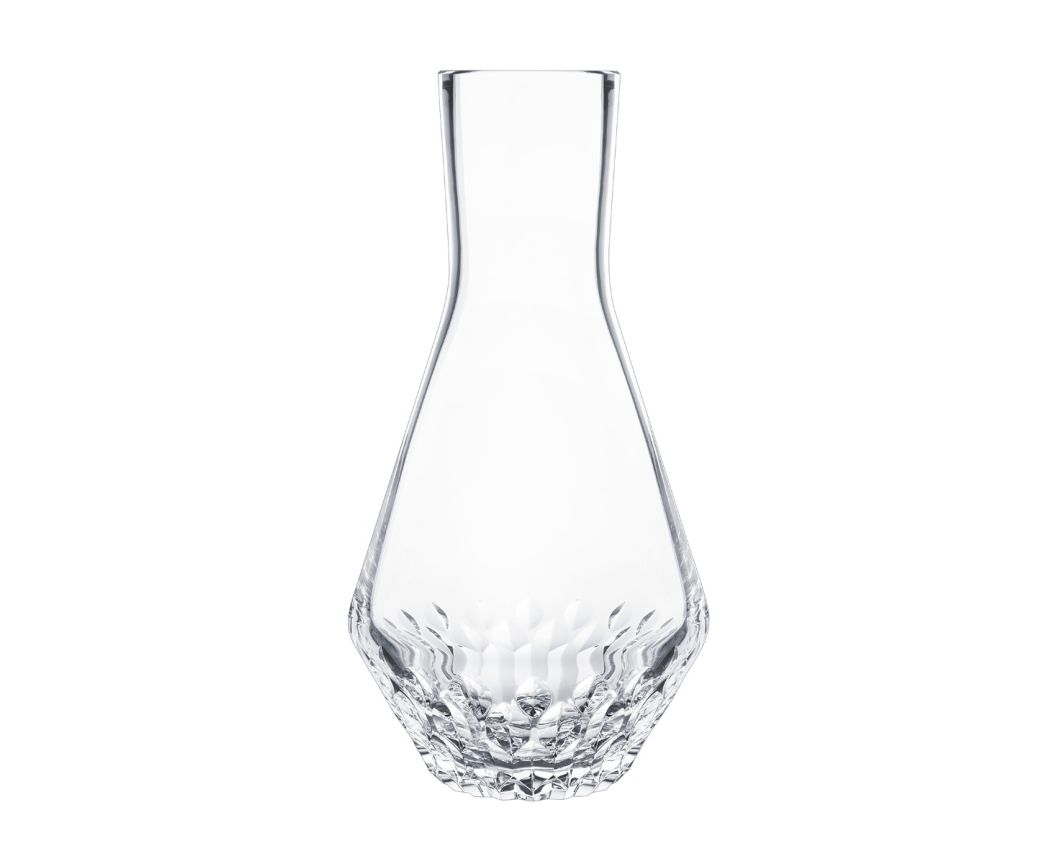 The water jug is part of a dinner service made up of 11 pieces in clear crystal, with the characteristic cut starting at the top of the leg and blossoming like a flower on the curve of the gob. An astonishing approach, rooted in a unique aesthetic for Saint-Louis. Noé Duchaufour-Lawrance interprets crystal cutting as a decor of geometric and organic forms.