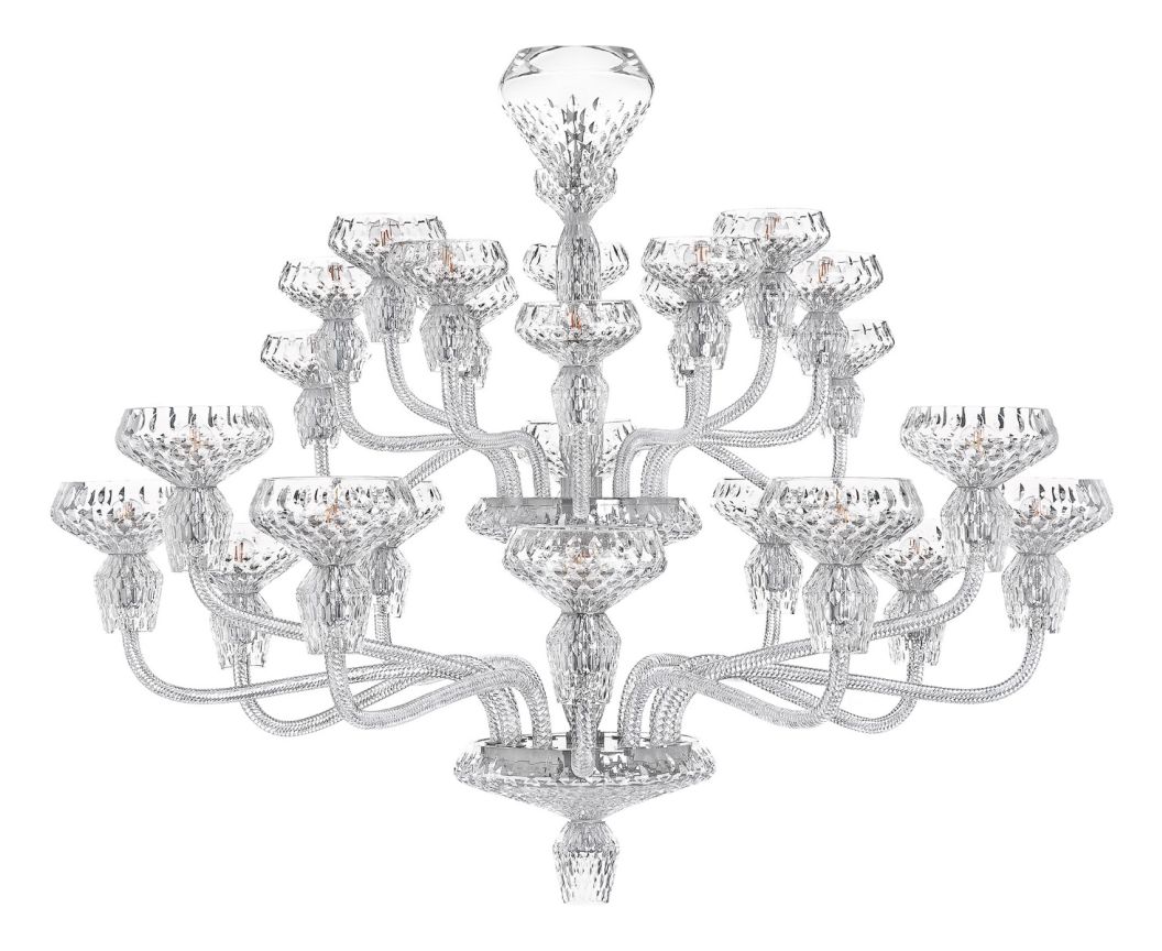 By using the structure of a classic chandelier, Noé Duchaufour-Lawrance has created three contemporary chandeliers, giving rise to a new type of unique and resolutely modern product. The geometric cut of the crystal extends along the bowls, cups and balusters in clear crystal.