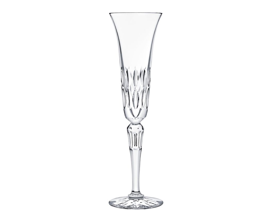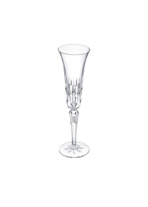 A large diamond-cut decoration on the gob and top of the leg and a star under the foot. A complete table service in clear crystal, the glasses are also available with a sparkling gold band around the foot and stem.