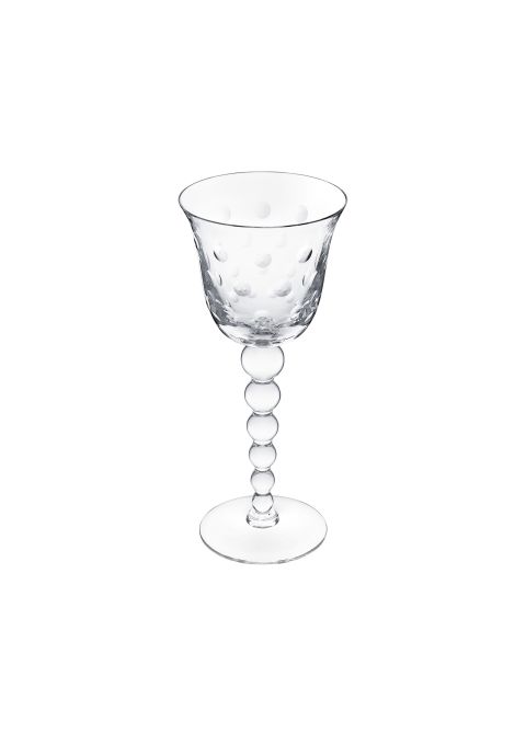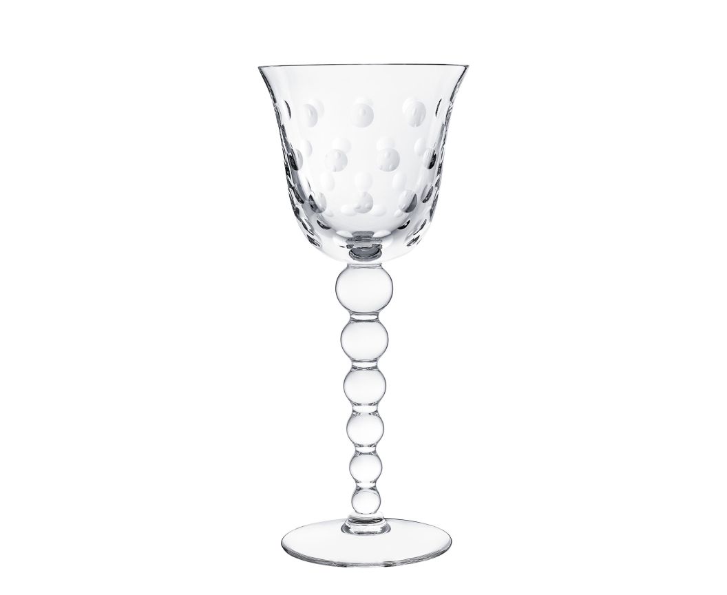 The vision of the drop of glass bead at the end of the blower's cane, both fragile and strong, inspired Teleri Ann Jones. Sparkling and sensual, developed in a vast family of shapes and uses, from the table to the bar, Bubbles has renewed the transparent, colorful creation of contemporary Saint-Louis services. The mischievous stacking of crystal beads on the leg and the goblet with sparkling bubbles are the originality of this line.