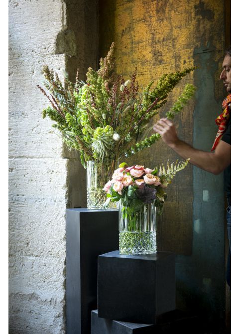 The interpretation of this oval vase in clear crystal is a tribute to the original 1969 model from the famous Tommy service. This vase combines a number of cutting techniques (pearls, bevels, diamonds and fine threads), and will harmoniously decorate any interior.