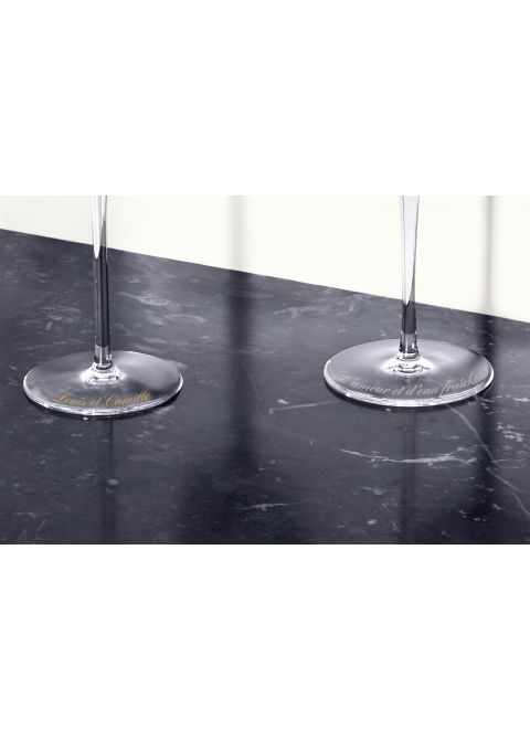 Like all quality wines, good champagnes need oxygen to release their aromas. To make the most of a champagne glass, fill it barely to a quarter. The idea is to stop where the disk is widest. The Saint-Louis champagne glass adds a horizontal dimension to the naturally vertical nature – the bubble trail – of champagne.