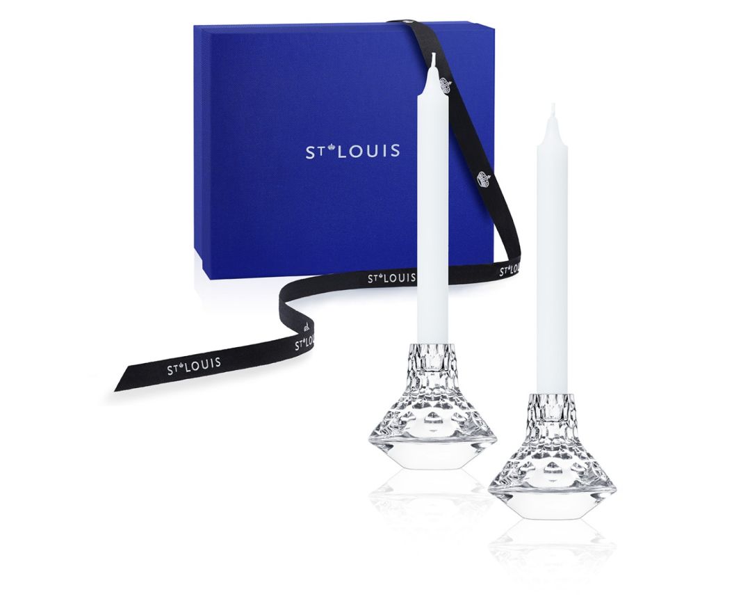 Set of two small candlesticks. As on ode to slow life, Folia offers a selection of photophores and candlesticks in clear crystal and clear or dark wood. "The size of the Folia crystal is inspired by a leaf that can be arranged geometrically to infinity or fly off the crystal, as if it were blowing a wind of madness." Noé Duchaufour-Lawrance