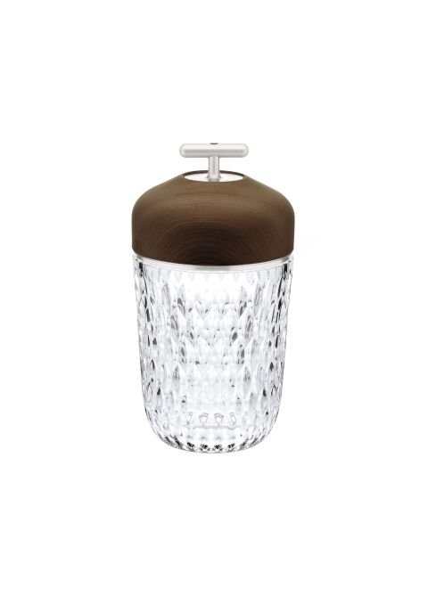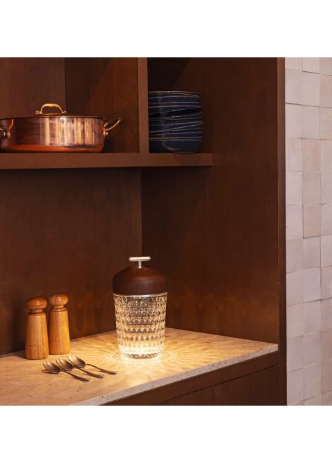All the creations in the cross-disciplinary Folia collection echo the forest surrounding the Saint-Louis workshop. It was here that Noé Duchaufour-Lawrance found his inspiration and decided to combine the radiance of crystal with the strength of wood. Folia is a tribute to the leaves of the Moselle Forest and an ode to creative folly. The latest creation, the mini portable lamp, enriches the Maison’s signature luminous piece with a new proposal: a small cordless light that fits in the palm of your hand.