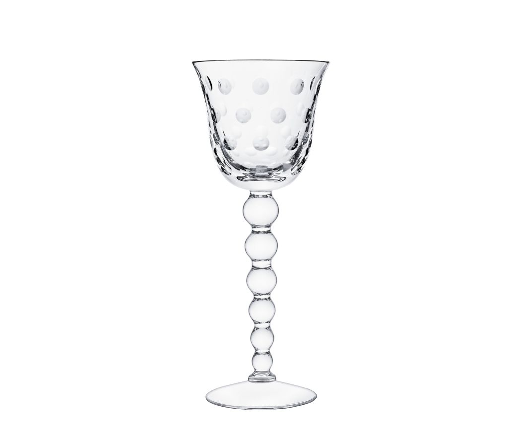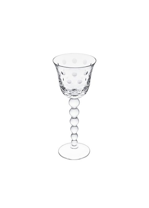 The vision of the drop of glass bead at the end of the blower's cane, both fragile and strong, inspired Teleri Ann Jones. Sparkling and sensual, developed in a vast family of shapes and uses, from the table to the bar, Bubbles has renewed the transparent, colorful creation of contemporary Saint-Louis services. The mischievous stacking of crystal beads on the leg and the goblet with sparkling bubbles are the originality of this line.