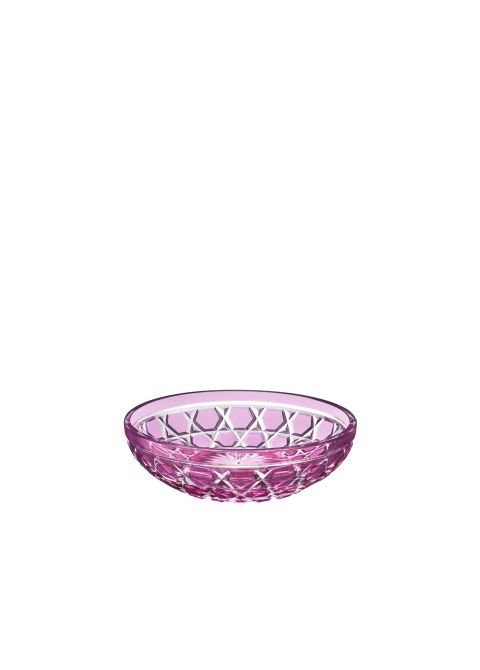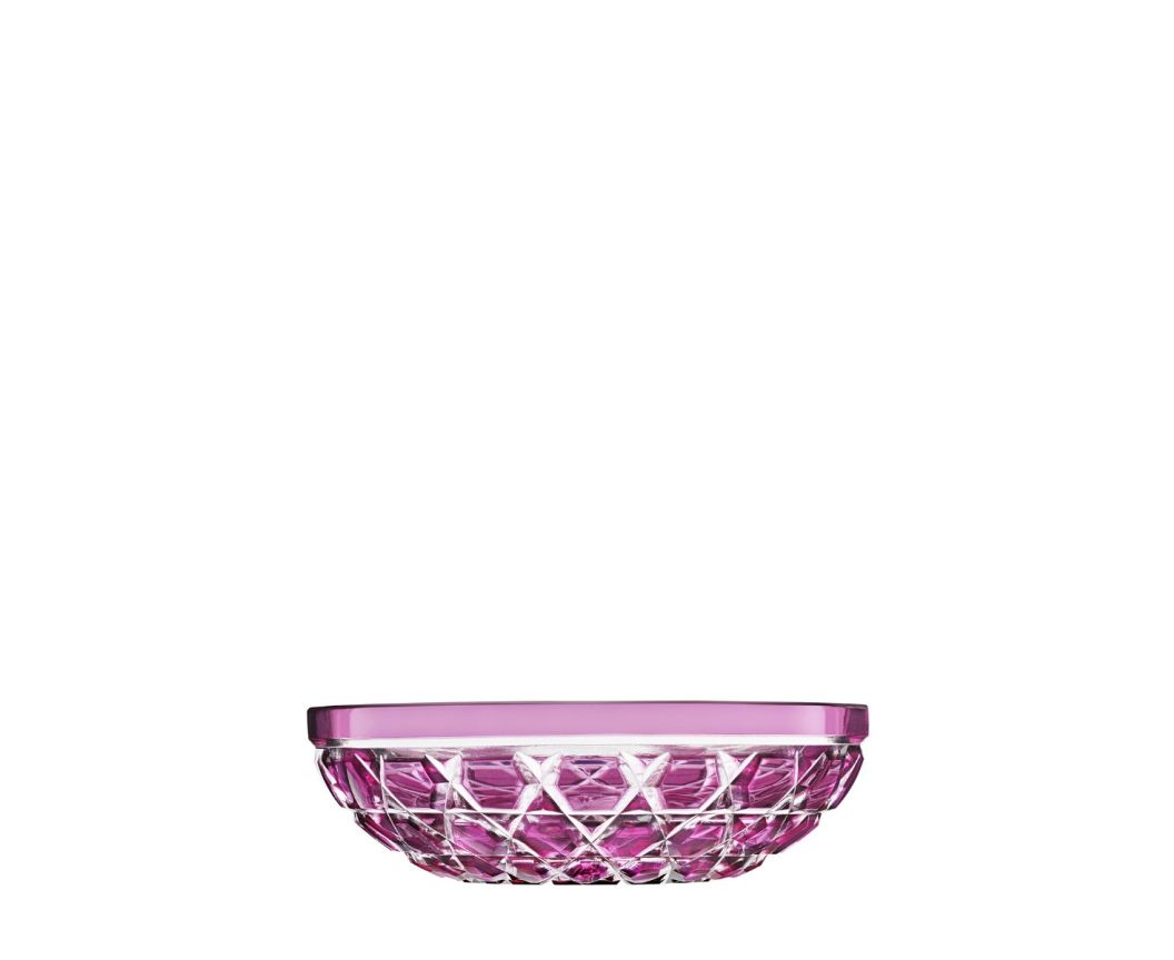 • These cups, bowls, and centerpiece, inspired by the bobèches of the chandeliers in the Royal collection, feature a clear or colored crystal base and a pierrerie cut (also known as a large diamond).