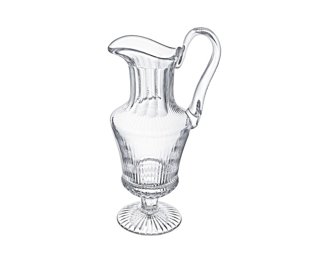 Née du motif classique de la collection Thistle en 1979, la ligne Apollo présente un raffinement extrême. La fluidité des lignes et la finesse de la gravure expriment avec clarté la nature liquide essentielle du cristal. De fines côtes vénitiennes sur la paraison et la surprenante taille nic-nac coulent le long des verres Apollo, telles une cascade d'eau pure qui viendrait s'épanouir rondement.