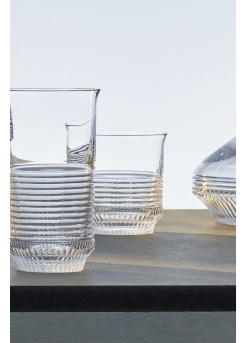 Fruit de la rencontre entre une manufacture séculaire et un design radical, Cadence se distingue par sa simplicité formelle et contemporaine. Le dessin de Pierre Charpin rythme la matière Le motif régulier des lignes inscrites dans le cristal est savamment adapté aux contraintes du matériau, grâce au savoir-faire des verriers. La régularité des sillons gravés dans la matière en réhausse l’éclat et la clarté. La partition qui se joue ici laisse deviner le travail tenace que requiert toute maîtrise d’un geste, qu’il s’agisse de dessin à main levée ou de ceux qui composent l’art verrier.