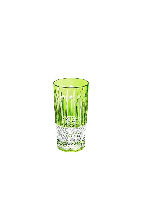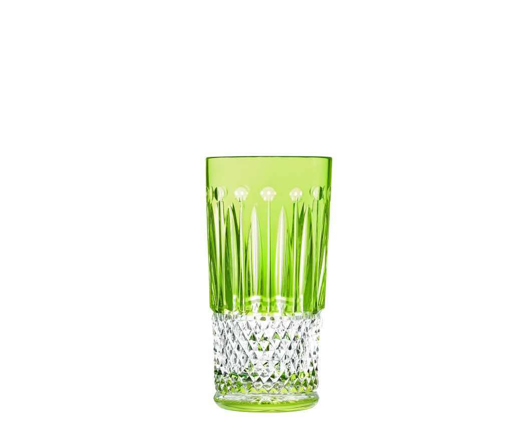 La chope chartreuse fait partie d'un service de table en cristal de couleur. Celui-ci se compose également d'un roemer, une flûte à champagne, un gobelet cylindrique petit, un verre à cocktail et un old fashion moyen n°3.