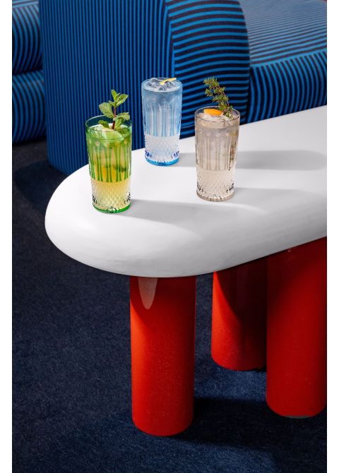 Représentation du savoir-faire de la cristallerie Saint-Louis, les verres présentent des tailles diamants, amandes, filets, cordons et perles sur la paraison, et un pied taillé en étoile. Et si l’exceptionnel devenait une fête de tous les jours ? Tommy déploie ses couleurs audacieuses au service des usages contemporains.