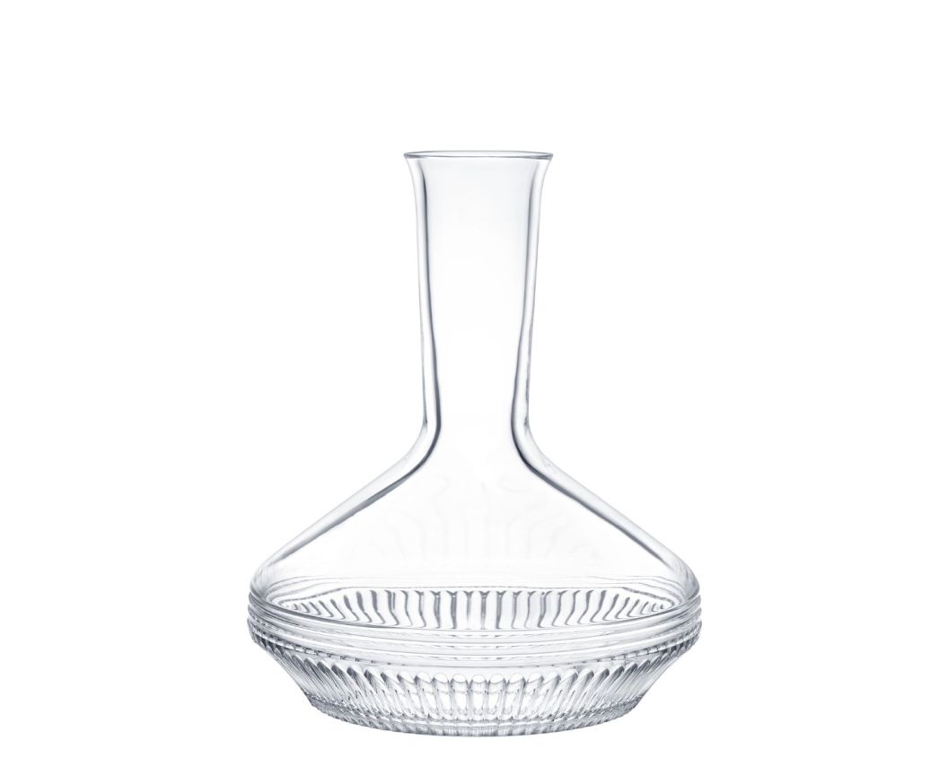 Carafe à vin en cristal clair. Cordons verticaux sur la base et cordons horizontaux sur le corps de la carafe.