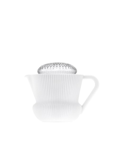 La grande théière ne contient pas de filtre intégré. Il est conseillé de se procurer des filtres en papier taille L ou XL ou un filtre en coton. Le couvercle en cristal n’étant pas fixé à la porcelaine, il est recommandé de bien le tenir lors de l’utilisation de la théière.