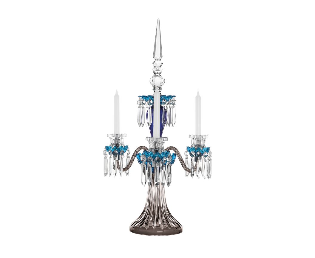 CANDÉLABRE 3 BOUGIES BLEU CLAIR BLEU FONCÉ FLANELLE