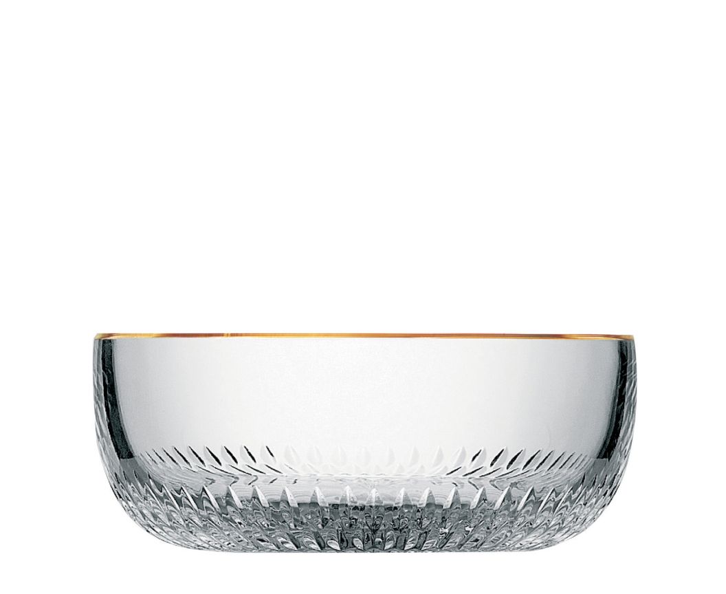 Née du motif classique de la collection Thistle en 1979, la ligne Apollo présente un raffinement extrême. La fluidité des lignes et la finesse de la gravure expriment avec clarté la nature liquide essentielle du cristal. De fines côtes vénitiennes sur la paraison et la surprenante taille nic-nac coulent le long des verres Apollo, telles une cascade d'eau pure qui viendrait s'épanouir rondement.