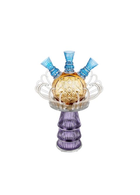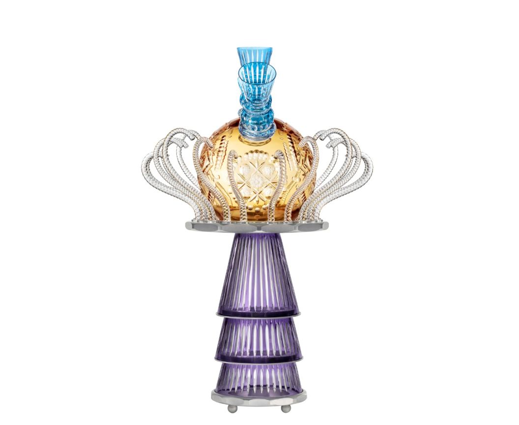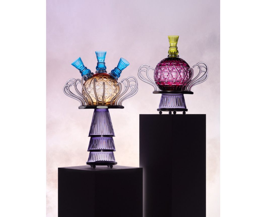 En quête perpétuelle de réinvention de ses pièces exceptionnelles, Saint-Louis s’est associé à l’artiste-décorateur ornemaniste Pierre Marie Agin, féru d’artisanat, de motifs et de couleurs qu’il met au service d’un univers flamboyant. Ensemble, ils ont imaginé Chamade, des pièces en cristal exceptionnelles entre sculptures et tulipières géantes.