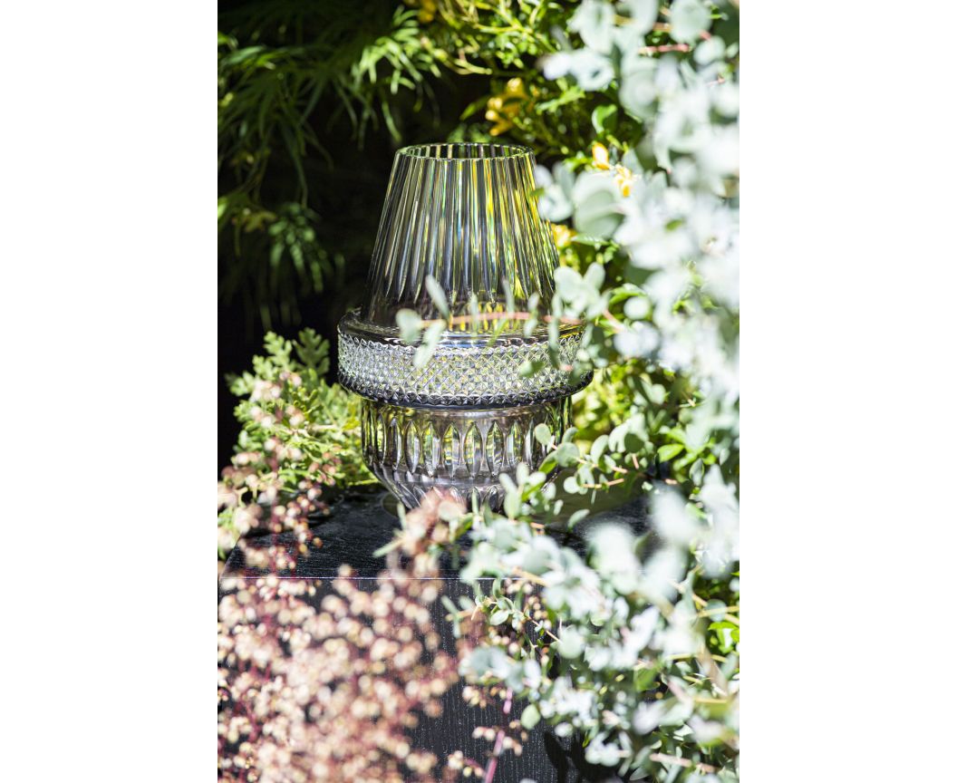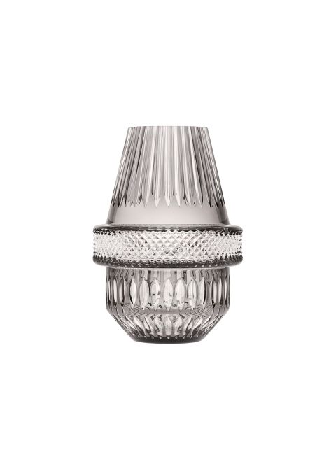 Pièce de prestige, édition numérotée et limitée à 188 exemplaires. Cristal clair doublé de flanelle et taillé diamants et biseaux. La forme des vases au col refermé permet d’y placer aussi bien des bouquets minimalistes que des compositions florales plus opulentes. Une collection à l’esthétique atypique, qui raconte sa propre fabrication.