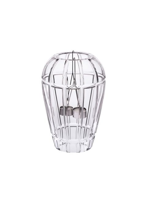 La réflexion sur la mise en valeur de la lumière voisine ici avec la métaphore de l’oiseau en cage. Deux jeunes designers, Émilie Colin Garros et Philippine Lemaire réinterprètent le photophore pour chorégraphier un délicat ballet lumineux. Une balancelle métallique sur laquelle se posent une, deux ou trois bougies, souligne la taille cordons plats déclinée en formats et couleurs différents.