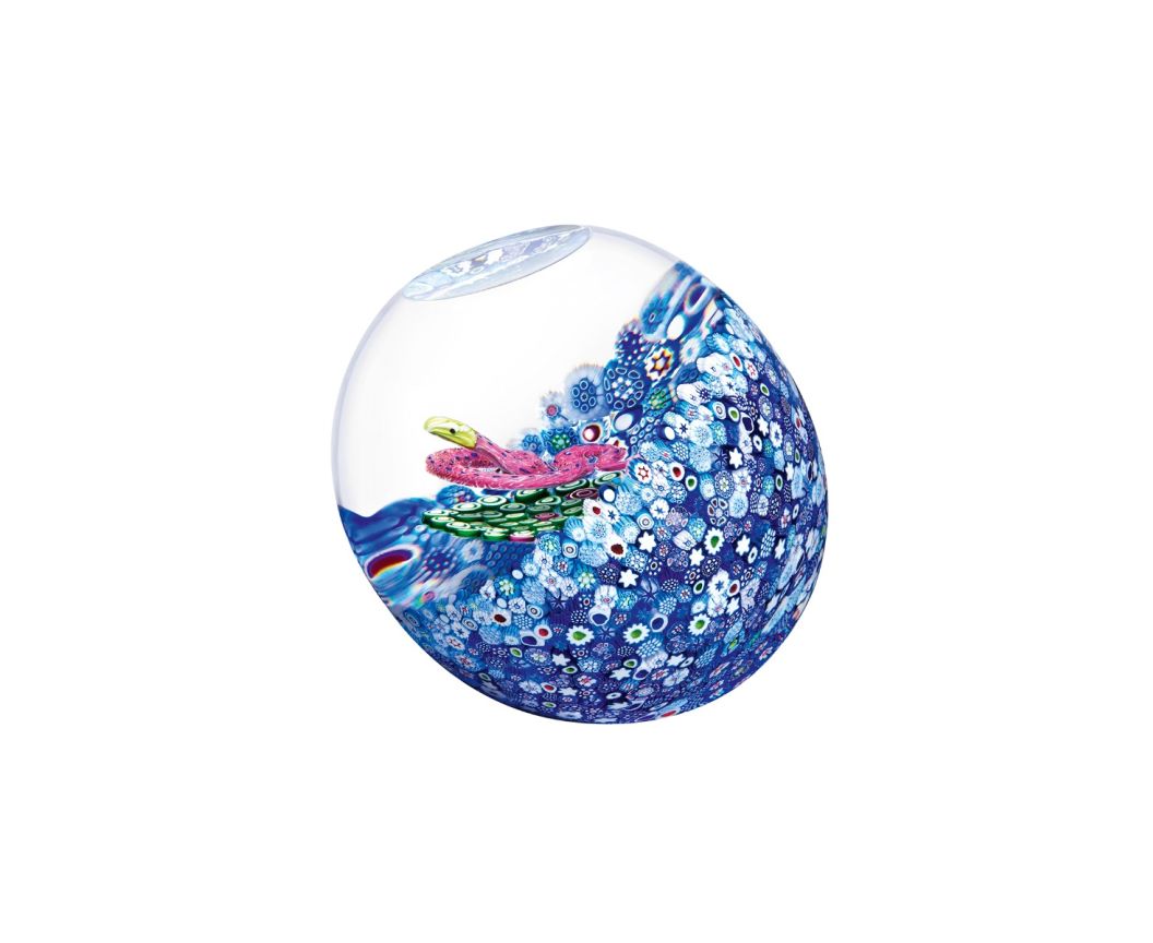 Fleuron de Saint Louis, cet atelier unique condense de nombreuses techniques de la manufacture (sulfure, inclusion, overlay, torsade, chalumeau), capturées dans un objet fascinant qui possède la fragile éternité de l’instant.