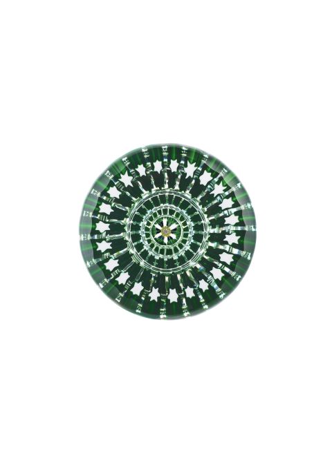 Un presse-papiers saisonnier, détournant avec humour les codes des fêtes de fin d’année en les réinterprétant de manière contemporaine. Un objet à surprise : retourné, il se fait kaléidoscope pour magnifier le millésime Saint-Louis et rendre hommage au jouet de notre enfance. Un hommage à la manufacture et la dense forêt de conifères qui l’entoure, et son sous-bois tapissé de fleurs blanches (les « maîtres de la forêt »). Enfin, un clin d’œil à la tradition du sapin de Noël, profondément ancré dans le « pays du cristal » (Est de la France), le berceau de Saint-Louis.
