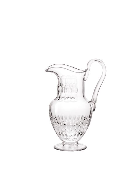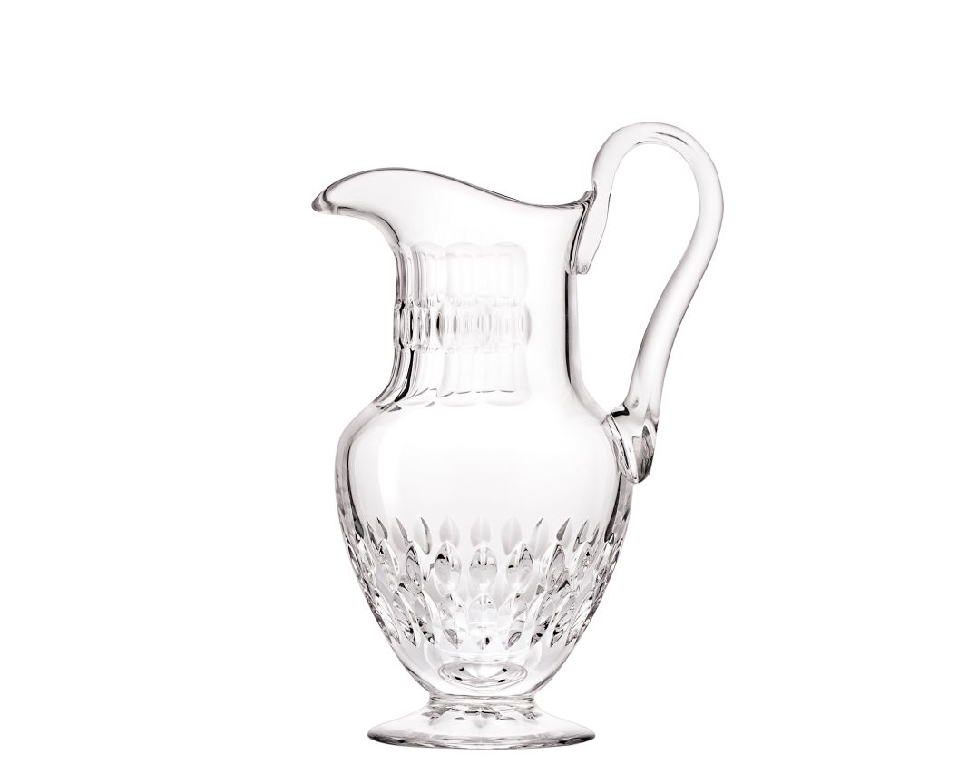 Un important décor de losanges taillés sur la paraison et le haut de la jambe et une étoile sous le pied. Service de table complet en cristal clair, les verres sont également disponibles avec une bande dorée étincelante autour du pied et du buvant.
