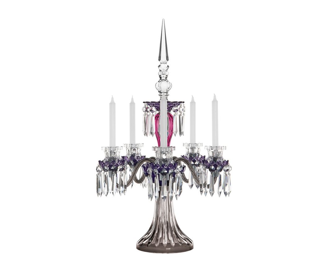 CANDELABRO A 5 CANDELE VIOLA AMETISTA FLANELLA