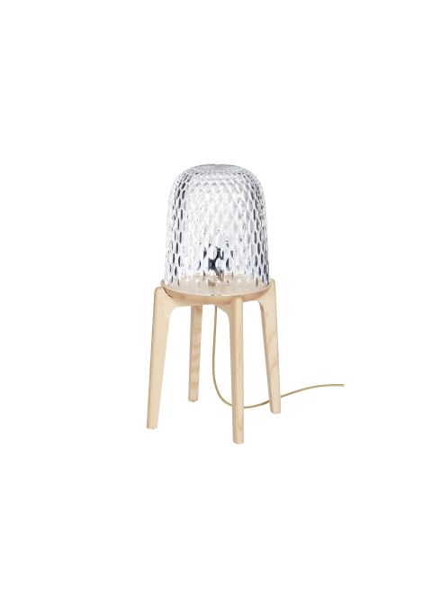 La collezione di illuminazione Folia comprende tre modelli in cristallo trasparente e frassino massiccio.