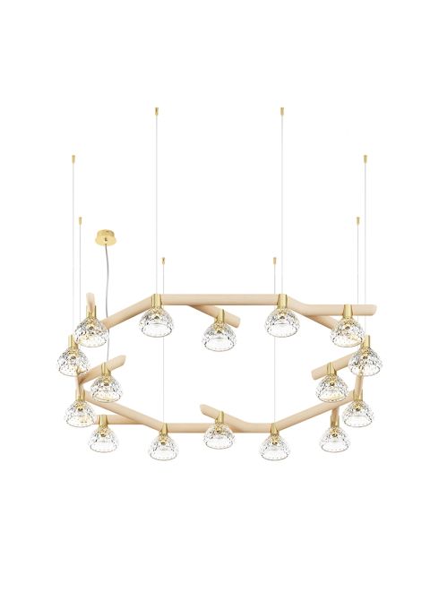 LAMPADA A SOSPENSIONE A 16 LUCI CON UNITÀ CIRCOLARE IN LEGNO SCURO