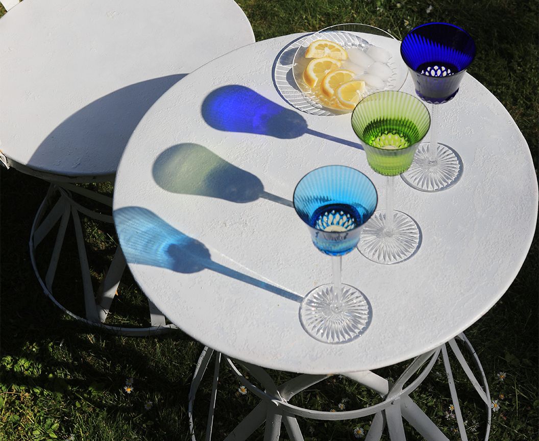 I bicchieri da garretto Apollo, progettati nel 1979, sono capolavori di artigianato. Possono essere utilizzati come bicchieri da vino bianco o da acqua. Per completare un singolo bicchiere sono necessari cinque giorni, l'abilità di dieci premiati soffiatori di vetro e cinque tagliatori. La tavolozza dei colori spazia dal rosso magico al turchese scintillante o alla moderna flanella. Questi gioielli possono essere disposti in uno splendido bouquet di luminosi bicchieri di cristallo, oppure si può rimanere fedeli a un solo colore e organizzare splendide decorazioni da tavola abbinate.